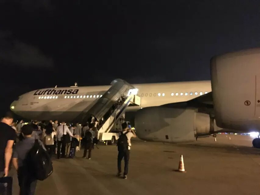 12个小时后安全抵达慕尼黑,逛完免税店马不停蹄立即找安检准备出关,在海关碰到一个懒货工作人员,其实不是懒,是太定心,别人三个过关,我们才一个。。。 那个时候淡定最重要,三个问题回答后按了手印顺利出关,“去哪里”、“去干嘛”和“去几天”。。。是不是太简单了,完全没有想象的那么难 ,出关后转了大半天没找到登机口,后来在一个德国小妹妹的帮助下搭了轻轨找到登机口,一支烟抽完头有点晕,随即品尝了机场的免费咖啡,国外的机场真不错。 转机大概花了2个小时不到,其中大部分时间是安检,看来选择慕尼黑机场是正确的。