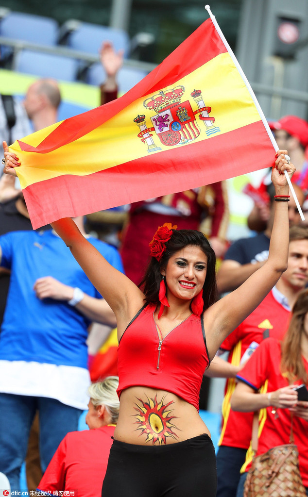 欧洲杯淘汰赛第3日美女球迷。